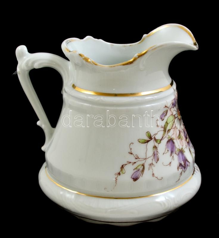 Leírás: Jelzett (Fischer Emil mint forgalmazó) részben kézzel festett kis kiöntő, kopott aranyozással, m:12 cm