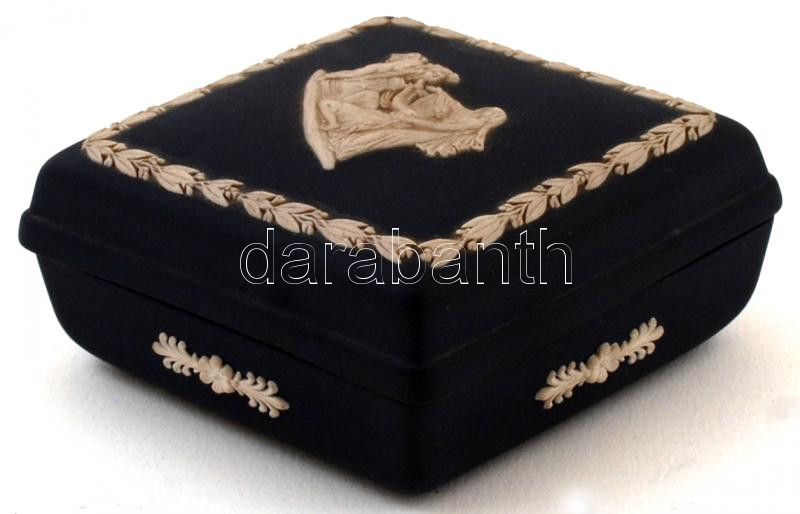 Leírás: Wedgwood kék-fehér rombusz alakú biszkvit porcelán dobozka, hibátlan, jelzett, 10x12x5 cm