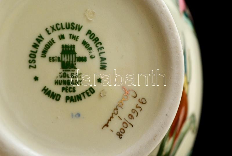 Zsolnay exclusiv váza, kézzel festett, jelzett, hibátlan, m: 17,5 cm https://www.darabanth.com/hu/319-Gyorsarveres/319.0/Festmeny-mutargy-papirregiseg-egyeb/Porcelan~8/Zsolnay-exclusiv-vaza-kezzel-festett-jelzett-hibatlan-m-17-5-cm~II1760489