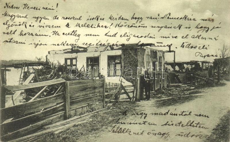 1912 Beresztelke, Breaza; a május 13-i ciklon alkalmával rombadőlt görög katolikus templom, paplak és tanítói lakás. Heiter György fényképész / ruins of the church, parish and teacher's home after the cyclone