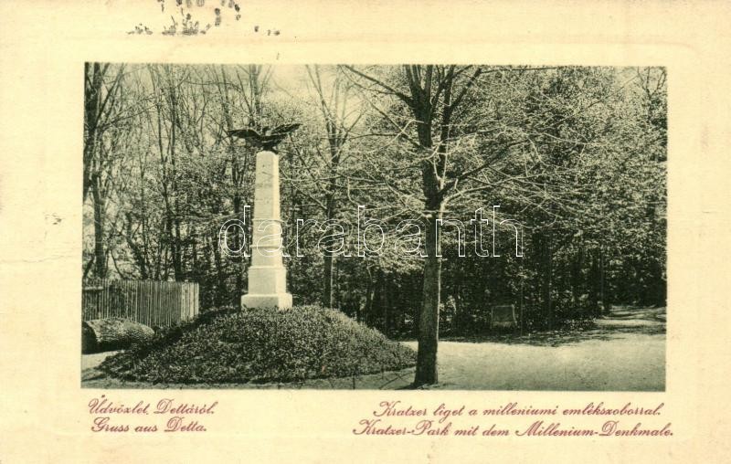 Detta, Ghedu, Deta; Kratzer liget, Milleniumi emlékszobor. W. L. Bp. 1... https://www.darabanth.com/hu/319-Gyorsarveres/319.0/Kepeslapok/Erdely~2500006/Detta-Ghedu-Deta-Kratzer-liget-Milleniumi-emlekszobor-W-L-Bp-1117-Kratzer-Park-mit-dem-M~II1761274