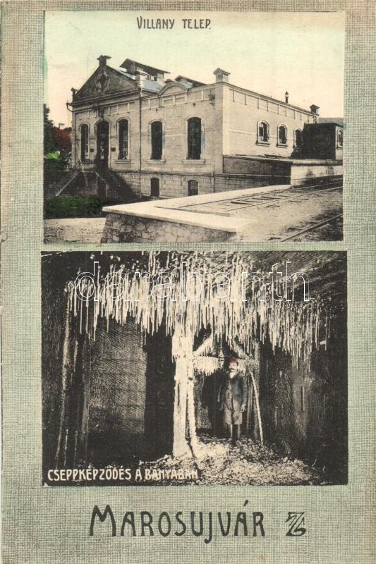 Leírás: Marosújvár, Ocna Mures; Villanytelep, Cseppképződés a bányában. Grünn Géza kiadása / power station, stalactite in the mine