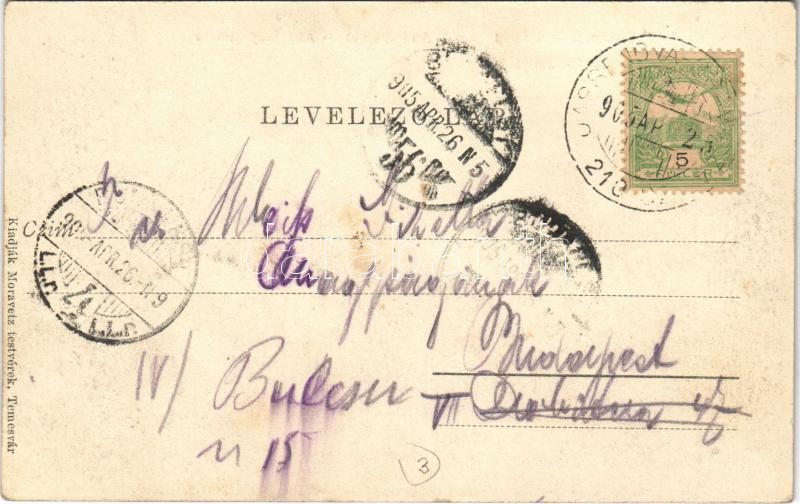 Leírás: Temesvár, Timisoara; Gyárváros, Andrássy út, villamos. Moravetz Testvérek kiadása / street view, tram + JASSENOVA-ORAVICZA 210 mozgóposta