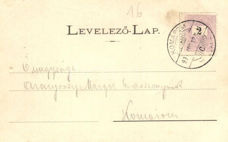 Leírás: 1899 Komárom, Komárno; Téli kikötő, jobb part, MFTR uszályok. Czike Dénes kiadása / winter harbor, port, barges