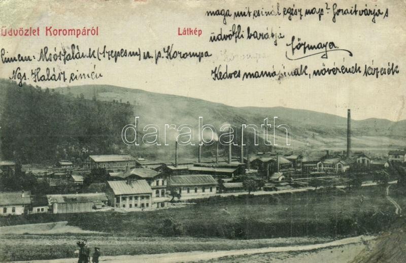 Leírás: Korompa, Krompach; Vasgyár. W. L. Bp. 2744. Kiadja Hamornik Otto / iron works, factory (r)