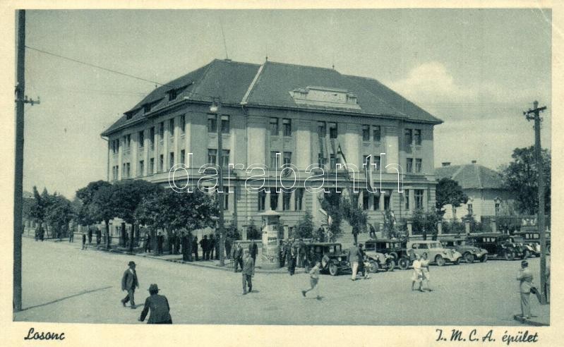 Losonc, Lucenec; Y.M.C.A. épület, hirdetőoszlop automobilokkalo / I.M.... https://www.darabanth.com/hu/319-Gyorsarveres/319.0/Kepeslapok/Felvidek~2500007/Losonc-Lucenec-YMCA-epulet-hirdetooszlop-automobilokkalo-IMCA-building-advertising-c~II1763182