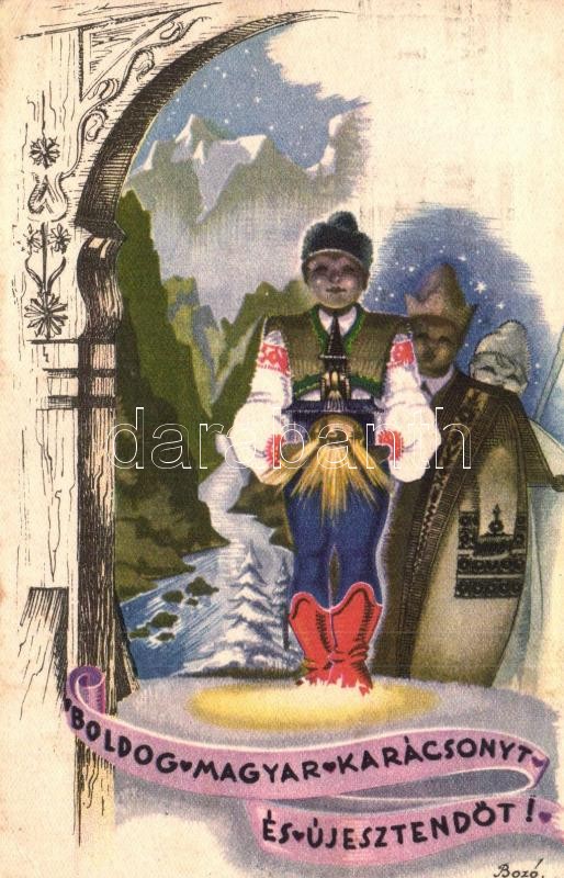 Leírás: 8 db régi Bozó irredenta ünnepi üdvözlőlap, művészlap / 8 pre-1945 Bozó signed irredenta greeting cards, art postcards