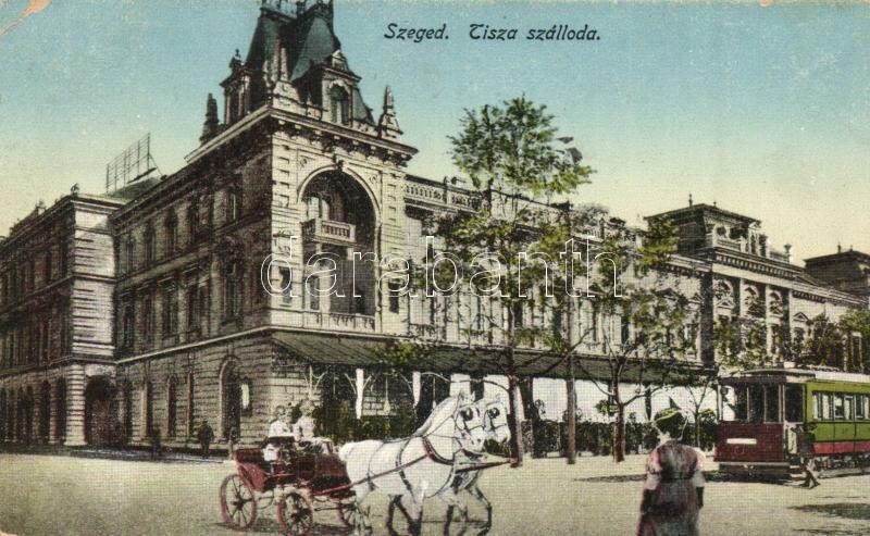 Szeged, Tisza szálloda, villamos, lovashintó (EK) https://www.darabanth.com/hu/319-Gyorsarveres/319.0/Kepeslapok/Magyarorszag~2500005/Szeged-Tisza-szalloda-villamos-lovashinto-EK~II1763474