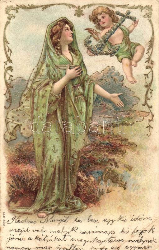 Leírás: 1906 Religious Art Nouveau golden Emb. litho (EB)
