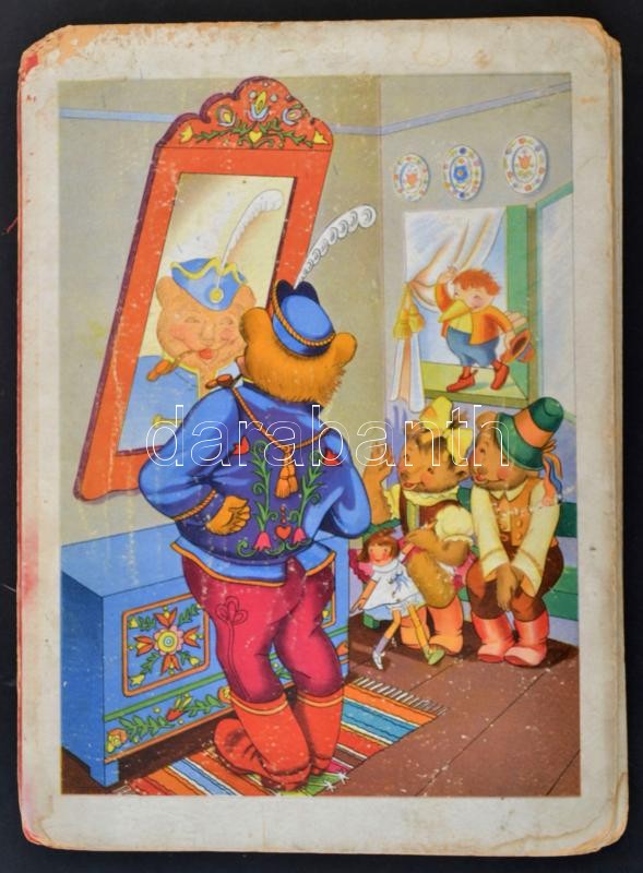 4 db mesekönyv - Saláta Sára, Piri baba és a 3 mackó, Hamupipőke, Tányértalpú Koma új képeskönyve. Kiadói kartonált kötések, széteső, megviselt állapotban.