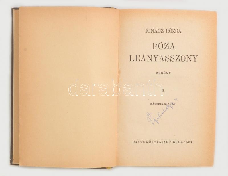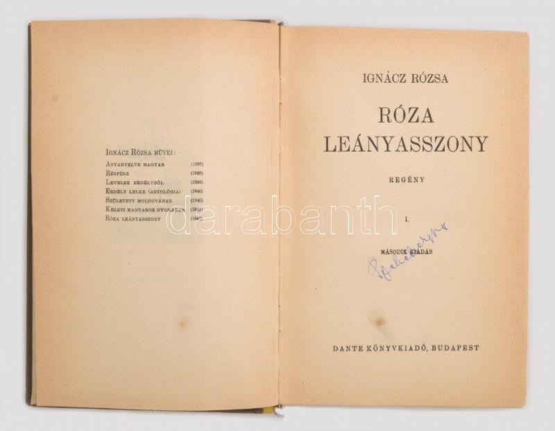 Ignácz Róza: Róza leányasszony I-II. Ignácz Róza munkái. Budapest, 194... https://www.darabanth.com/hu/319-Gyorsarveres/319.0/Konyvek/Konyvek-Egyeb-ritkasagok~1500016/Ignacz-Roza-Roza-leanyasszony-I-II-Ignacz-Roza-munkai-Budapest-1942-Dante-Masodik-kiad~II1425993