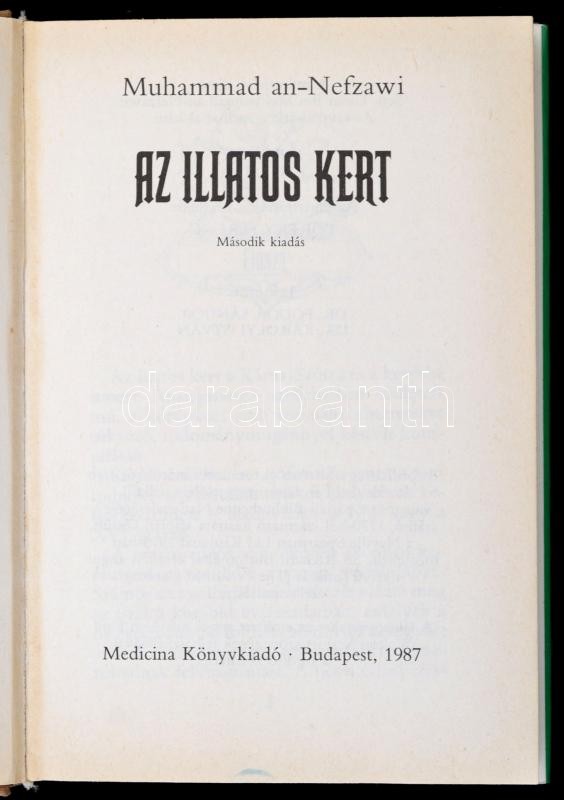 Muhammad an-Nefzawi: Az illatos kert. Erotikus kiadvány. Bp., 1987, Me... https://www.darabanth.com/hu/319-Gyorsarveres/319.0/Konyvek/Konyvek-Egyeb-ritkasagok~1500016/Muhammad-an-Nefzawi-Az-illatos-kert-Erotikus-kiadvany-Bp-1987-Medicina-Kiadoi-aranyozott-eg~II1760418