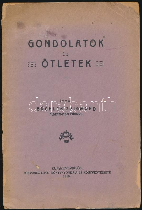 Büchler Zsigmond: Gondolatok és ötletek. Kunszentmiklós, 1910, Schwarc... https://www.darabanth.com/hu/319-Gyorsarveres/319.0/Konyvek/Konyvek-Judaika~1500012/Buchler-Zsigmond-Gondolatok-es-otletek-Kunszentmiklos-1910-Schwarcz-Lipot-Konyvnyomdaja-~II1761341