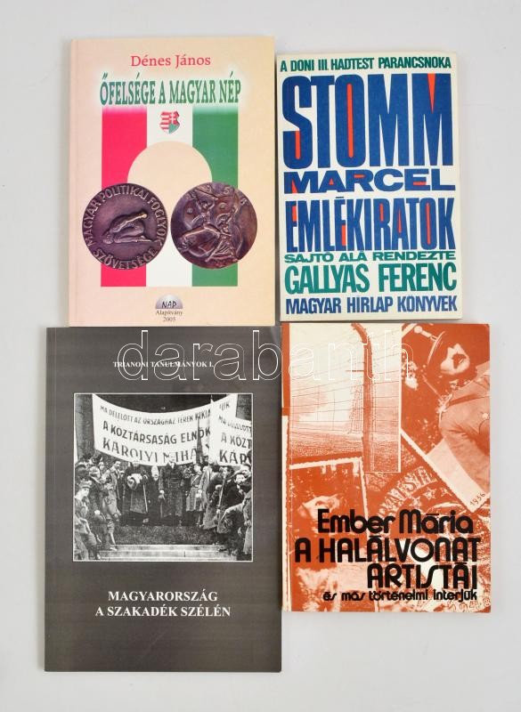 4 db könyv - Dénes János: Őfelsége a magyar nép; Szilassy Sándor: Magyarország a szakadék szélén; Gróf Stomm Marcel altábornagy: Emlékiratok. Kiadói papírkötésben, jó állapotban.