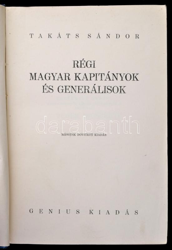 Takáts Sándor: Régi magyar kapitányok és generálisok I-II. Bp., é.n., Genius. Második, bővített kiadás. Kiadói félvászon-kötés, kopottas borítóval, javított kötéssel.