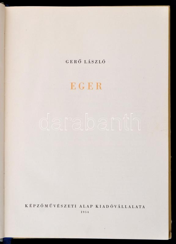 GerÅ‘ László: Eger. Magyar Műemlékek. Magyar Műemlékek. Bp., 1954, KépzÅ‘művészeti Alap Kiadóvállalata. Fekete-fehér fotókkal illusztrált. Kiadói félvászon-kötés, kissé kopott borÃtóval.