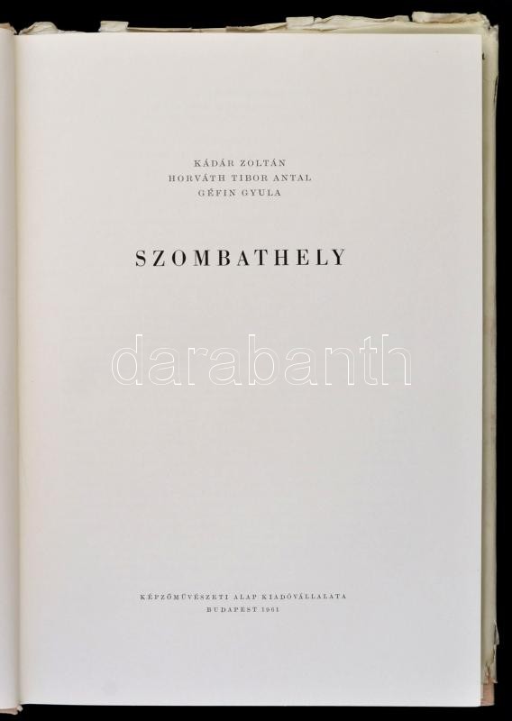 Kádár Zoltán-Horváth Tibor Antal-Géfin Gyula: Szombathely. Magyar Műem... https://www.darabanth.com/hu/319-Gyorsarveres/319.0/Konyvek/Konyvek-Utazas-helytortenet~1500001/Kadar-Zoltan-Horvath-Tibor-Antal-Gefin-Gyula-Szombathely-Magyar-Muemlekek-Bp-1961-Kepz~II1758437