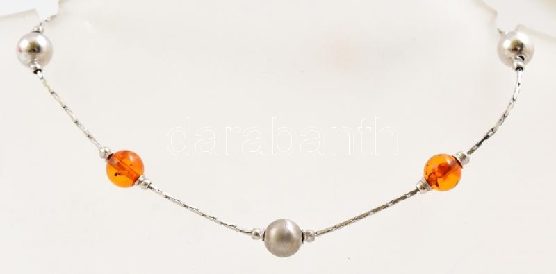 Leírás: Ezüst(Ag) karkötő borostyán gyöngy díszítéssel, jelzett, állítható hosszúság, min. h: 16,5 cm, bruttó: 3,6 g