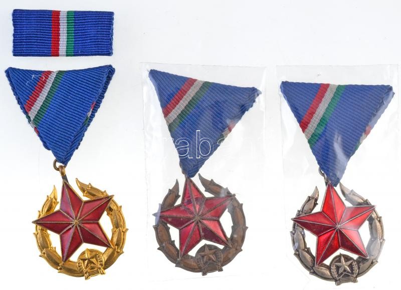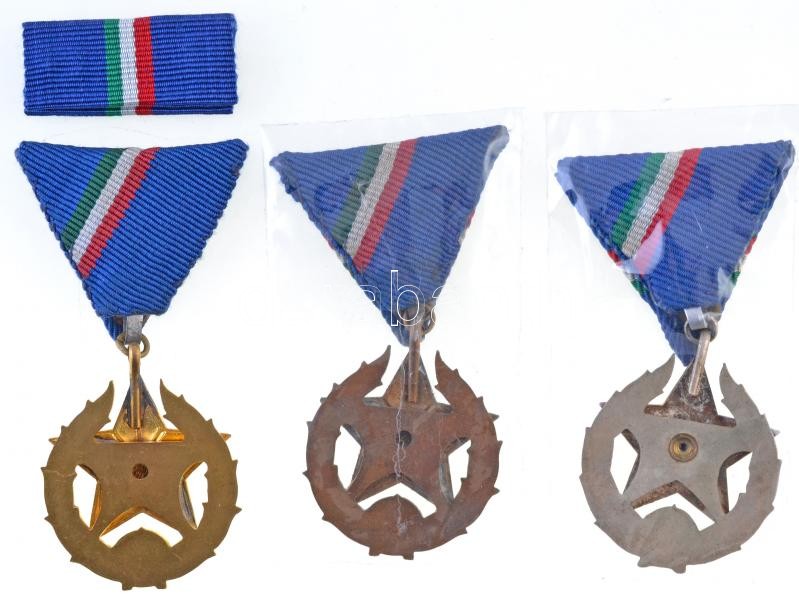 1951. "Közbiztonsági Érem" bronz, ezüst és arany fokozata a rendőrség tagjai részére, aranyozott, ezüstözött Br kitüntetések (3xklf), mellszalagon + 1db szalagsáv T:1-,2