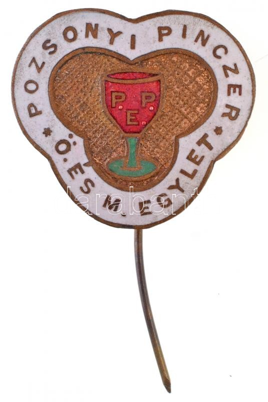 Leírás: ~1909. "Pozsonyi Pinczér Önsegélyző és Menház Egylet" zománcozott fém kitűző (26x24mm) T:2