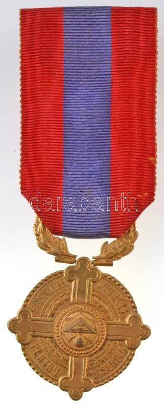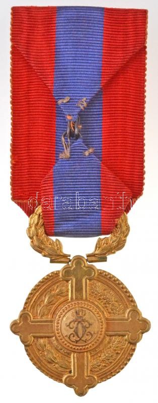Románia 1931. "Az elismerés keresztje a papság számára" aranyozott Br kitüntetés mellszalagon (38mm) T:2