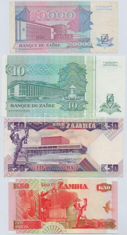 Mixed: Zaire 1991. 20.000 Zaires + 1993. 10 Zaires + Zambia 1986-1988. 50 Kwacha + 1992. 50 Kwacha C:UNC,XF,F