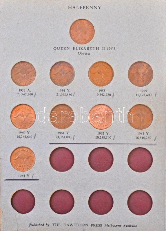 Ausztrália 1911-1964. 1/2p Br (62xklf) sérült gyűjtői albumba rendezve... https://www.darabanth.com/hu/319-Gyorsarveres/319.0/Numizmatika/Kulfoldi-fem-es-ezustpenzek~2000015/Ausztralia-1911-1964-12p-Br-62xklf-serult-gyujtoi-albumba-rendezve-T2-2---Australia-1911-1~II1762661