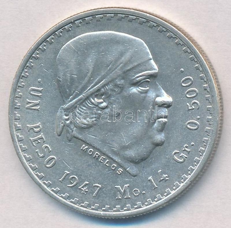 Krause KM#456 https://www.darabanth.com/hu/319-Gyorsarveres/319.0/Numizmatika/Kulfoldi-fem-es-ezustpenzek~2000015/Mexiko-1947-1P-Ag-T1---Mexico-1947-1-Peso-Ag-TAU--Krause-KM23456~II1763231