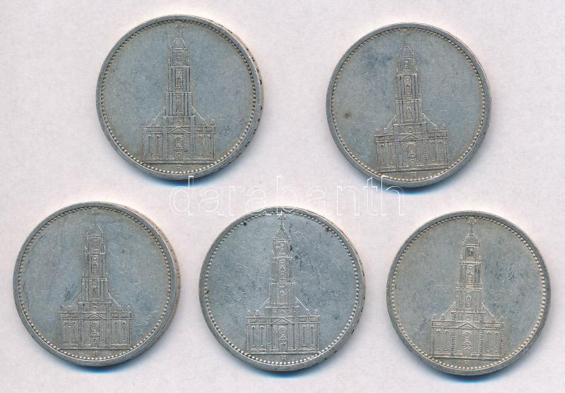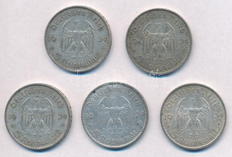 German Third Reich 1934A 5 Marks Ag "1st Anniversary of Nazi rule" (5x) C:XF,VF