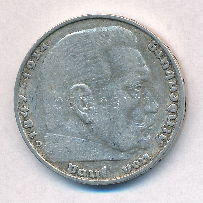 Ger... https://www.darabanth.com/hu/319-Gyorsarveres/319.0/Numizmatika/Kulfoldi-fem-es-ezustpenzek~2000015/Nemet-Harmadik-Birodalom-1937D-2M-Ag-Hindenburg-T2---German-Third-Reich-1937D-2-Mark-Ag-Hinden~II1754459