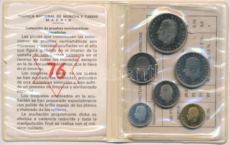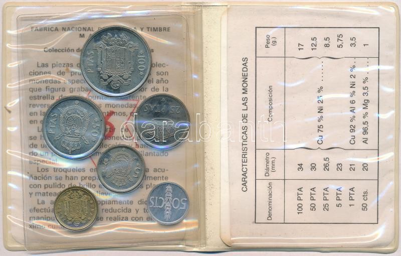 Leírás: Spanyolország 1976. 50c-100Ptas (6xklf) forgalmi szett, műbőr tokban T:1
