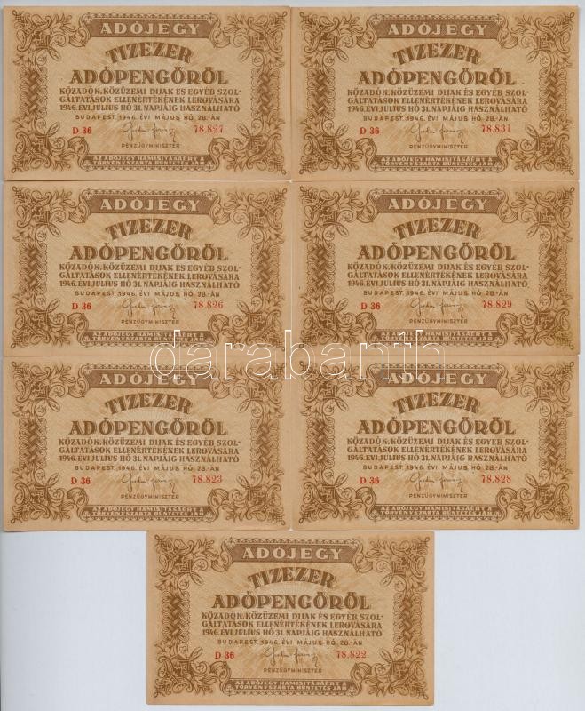 Leírás: 1946. 10.000P (7x) közte sorszámkövetők (2+4) és 1db közeli sorszám T:I-,II