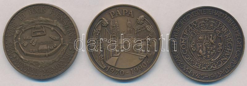 Kiss Sándor (1925-1999) 1982. "Magyar Éremgyűjtők Szombathelyi Csoportja - Jurisich Miklós / Kőszeg" Br emlékérem (42,5mm) + Tóth Sándor (1933-) 1983. "MÉE Hajdú-Bihar Megyei szervezete / II. Rákóczi György" Br emlékérem (42,5mm) + Bognár György (1944-) 1990. "20 éves a MÉE Pápai Csoportja / Pápa 1970-1990" jelzett Ag emlékérem (42,5mm) T:1-,2
