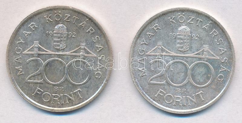 Leírás: 1992. 200Ft Ag "MNB" (2x) T:2 kis patina
