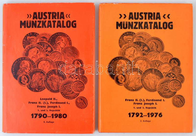 Leírás: "Austria Münzkatalog" 1792-1976. 3. Auflage. Verlag Netto-Marktpreiskatalog "Austria", Wien, d.n. + "Austria Münzkatalog" 1790-1980. 6. Auflage. Verlag Netto-Marktpreiskatalog "Austria", Wien, d.n. használt állapotban