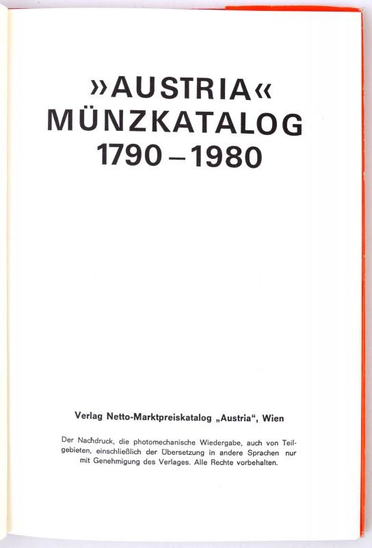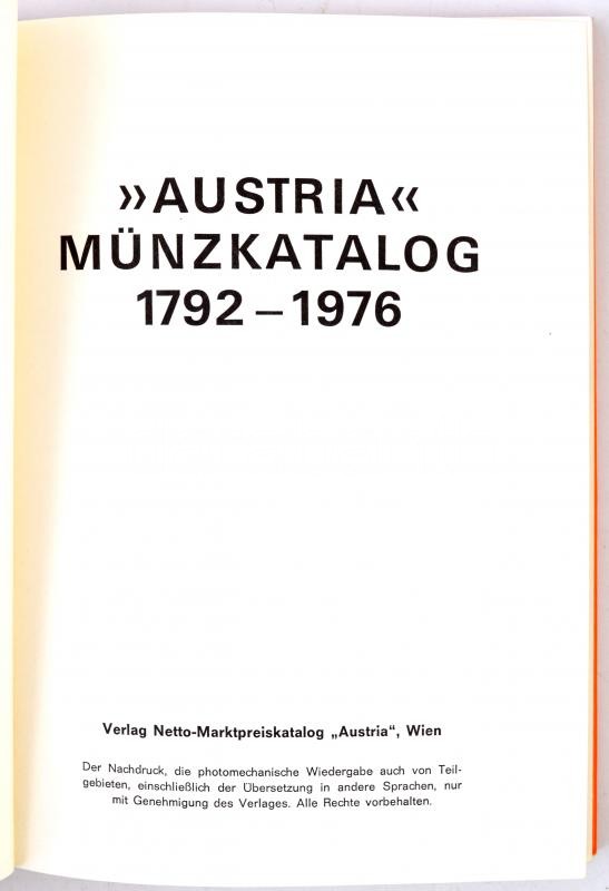 "Austria Münzkatalog" 1792-1976. 3. Auflage. Verlag Netto-Ma... https://www.darabanth.com/hu/319-Gyorsarveres/319.0/Numizmatika/Numizmatikai-irodalom~2000002/Austria-Munzkatalog-1792-1976-3-Auflage-Verlag-Netto-Marktpreiskatalog-Austria-Wien-dn-plus~II1388851