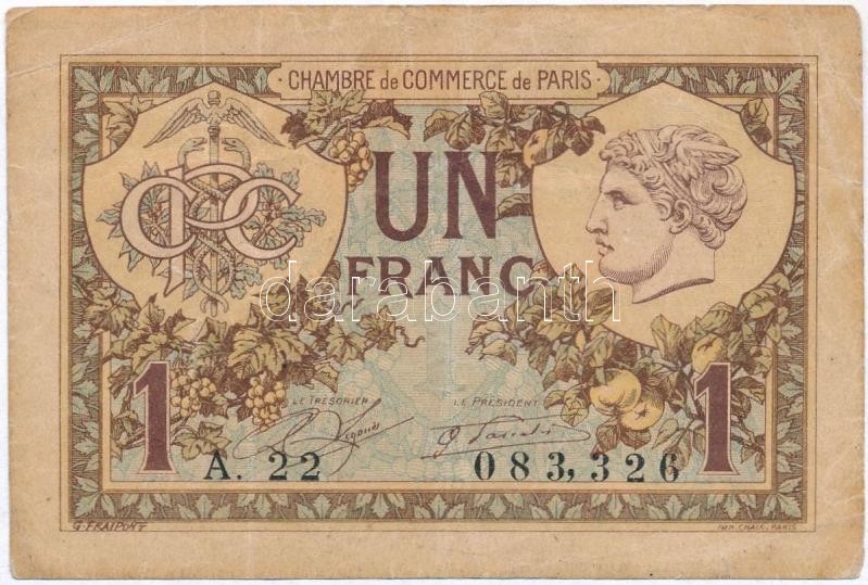 Franciaország / Párizsi Kereskedelmi Kamara 1920. 1Fr szükségpénz T:II... https://www.darabanth.com/hu/319-Gyorsarveres/319.0/Numizmatika/Papir-es-fem-szuksegpenzek~2000006/Franciaorszag-Parizsi-Kereskedelmi-Kamara-1920-1Fr-szuksegpenz-TIII--France-Chambre-de-Co~II1738232