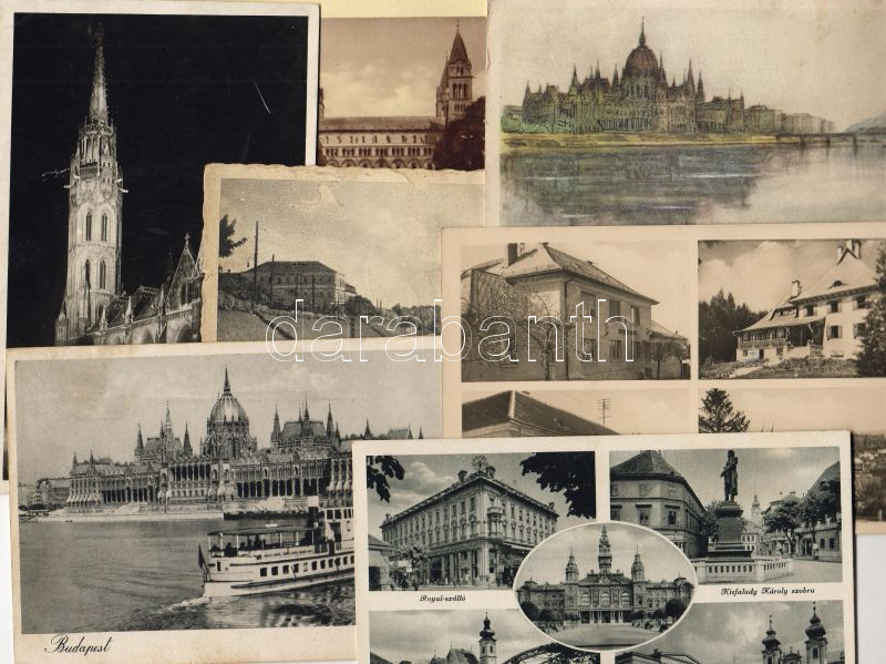 Leírás: 5db háború előtti + 2db 50-es évekbeli magyar városképes lap