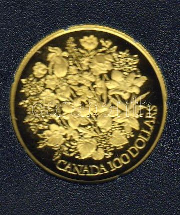 Leírás: Kanada 1977. "Virágok" 100$ arany 16,9655g díszdobozban T:PP
