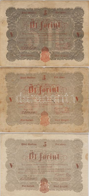 Leírás: 1848. "Kossuth bankó" 5Ft 3 klf igen eltérő színvariáns T:II/III,III
