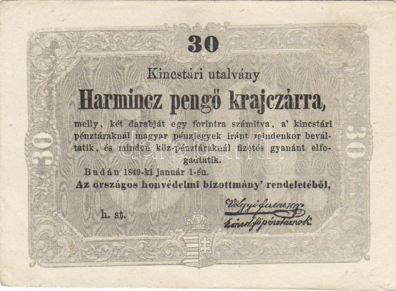 Leírás: 1849. "Kossuth bankó" 30Kr T:II+ Csak egyszer hajtva, erősen ferdén nyomva!