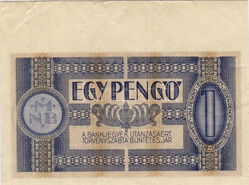 1938. 1P 16mm felső ívszéllel, nyomdai töréssel T:II https://www.darabanth.com/hu/32-Gyorsarveres/32.0/Numizmatika/Magyar-es-kulfoldi-bankjegyek~155/1938-1P-16mm-felso-ivszellel-nyomdai-toressel-TII~II63711