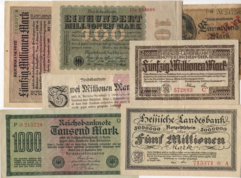 D.Reich 1922-23. Infla-Lot jobbakkal T:II,IV https://www.darabanth.com/hu/32-Gyorsarveres/32.0/Numizmatika/Magyar-es-kulfoldi-bankjegyek~155/DReich-1922-23-Infla-Lot-jobbakkal-TII-IV~II63754