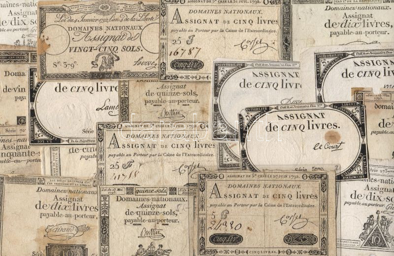 Franciaország 1792-93. 28db "Assignata" bankjegy T:III,III/IV,IV benne... https://www.darabanth.com/hu/32-Gyorsarveres/32.0/Numizmatika/Magyar-es-kulfoldi-bankjegyek~155/Franciaorszag-1792-93-28db-Assignata-bankjegy-TIII-IIIIV-IV-benne-ragasztottak-is-Ritkan-ajC3~II63701