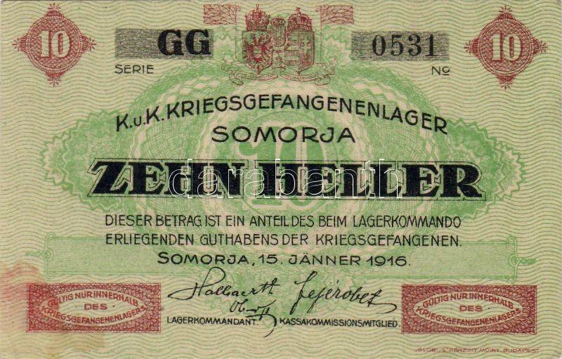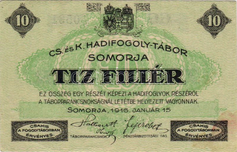 1916. Somorja/ hadifogolytábor 10f T:I https://www.darabanth.com/hu/32-Gyorsarveres/32.0/Numizmatika/Papirpenzek-szuksegpenzek-hadifogolypenzek-penzhelyettesito-eszkozok~156/1916-Somorja-hadifogolytabor-10f-TI~II63731