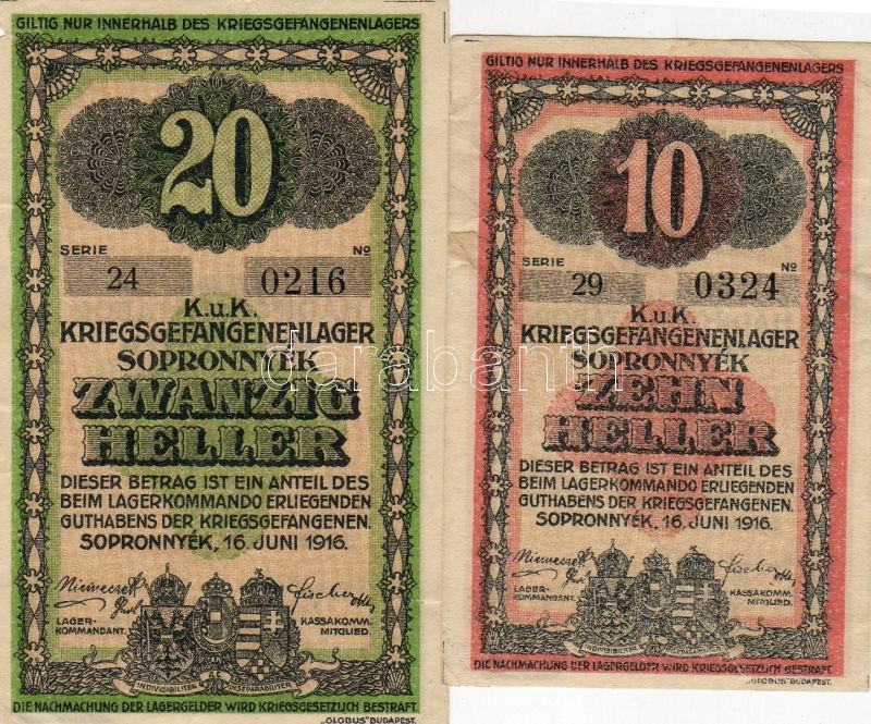 1916. Sopronnyék/ hadifogolytábor 10f,20f T:III/IV https://www.darabanth.com/hu/32-Gyorsarveres/32.0/Numizmatika/Papirpenzek-szuksegpenzek-hadifogolypenzek-penzhelyettesito-eszkozok~156/1916-Sopronnyek-hadifogolytabor-10f-20f-TIIIIV~II63733