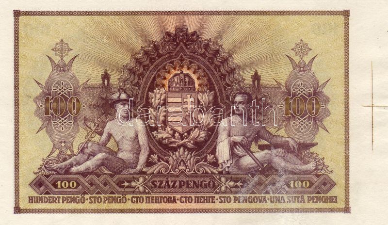 Leírás: 1943 100P "Szálasi" T:I jobb ívszéles illesztőkeretes példány! RRR!!!