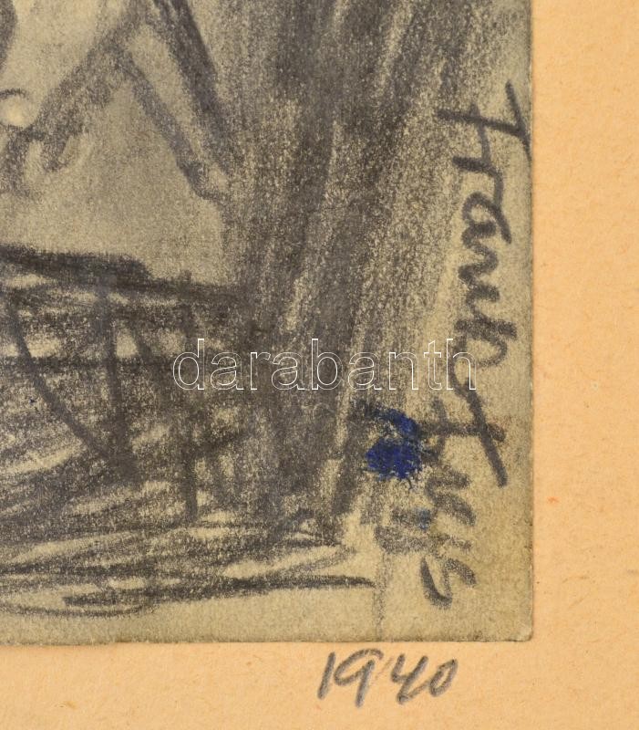 Leírás: Frank Frigyes (1890-1976): Asztal 1940. Szén, papír, jelzett, hátoldalán a művész dedikációjával, 15×19 cm