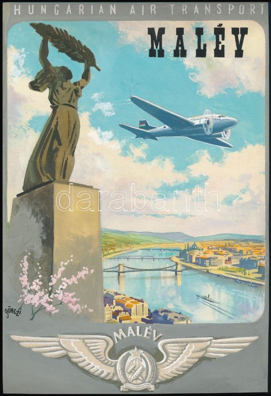 Gönczi-Gebhardt Tibor (1902-1994): MALÉV plakát terv. Megvalósult. Akv... https://www.darabanth.com/hu/32-Nagyaukcio/32.1/Festmenyek-es-grafikak/Festmenyek-es-grafikak~13345/Gonczi-Gebhardt-Tibor-1902-1994-MALEV-plakat-terv-Megvalosult-Akvarell-papir-Jelzett-30x~II2002323