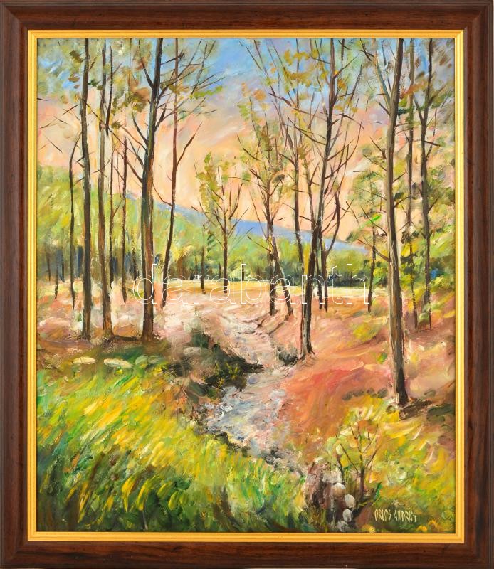Leírás: Orvos András (1939-): Börzsöny. Olaj, farost, jelzett, keretben, 60×50 cm